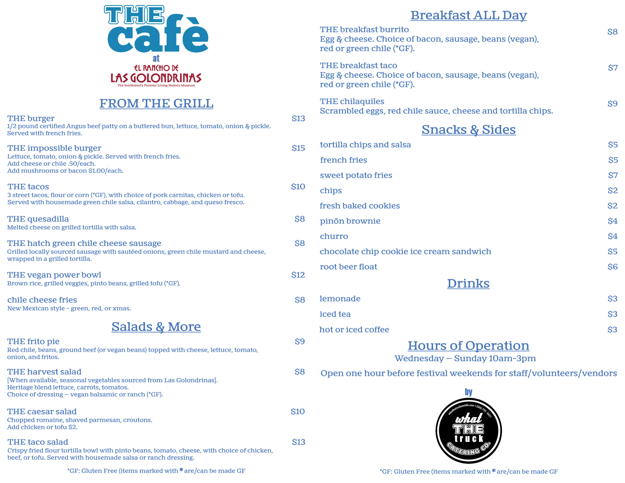 provided by What THE Truck Catering Co. During festival weekends, a variety of food trucks are on-site, serving up an array of delicious options. Snacks and drinks are always available for purchase in the Museum Store, and water stations are located around the museum so you can refill your water bottle.